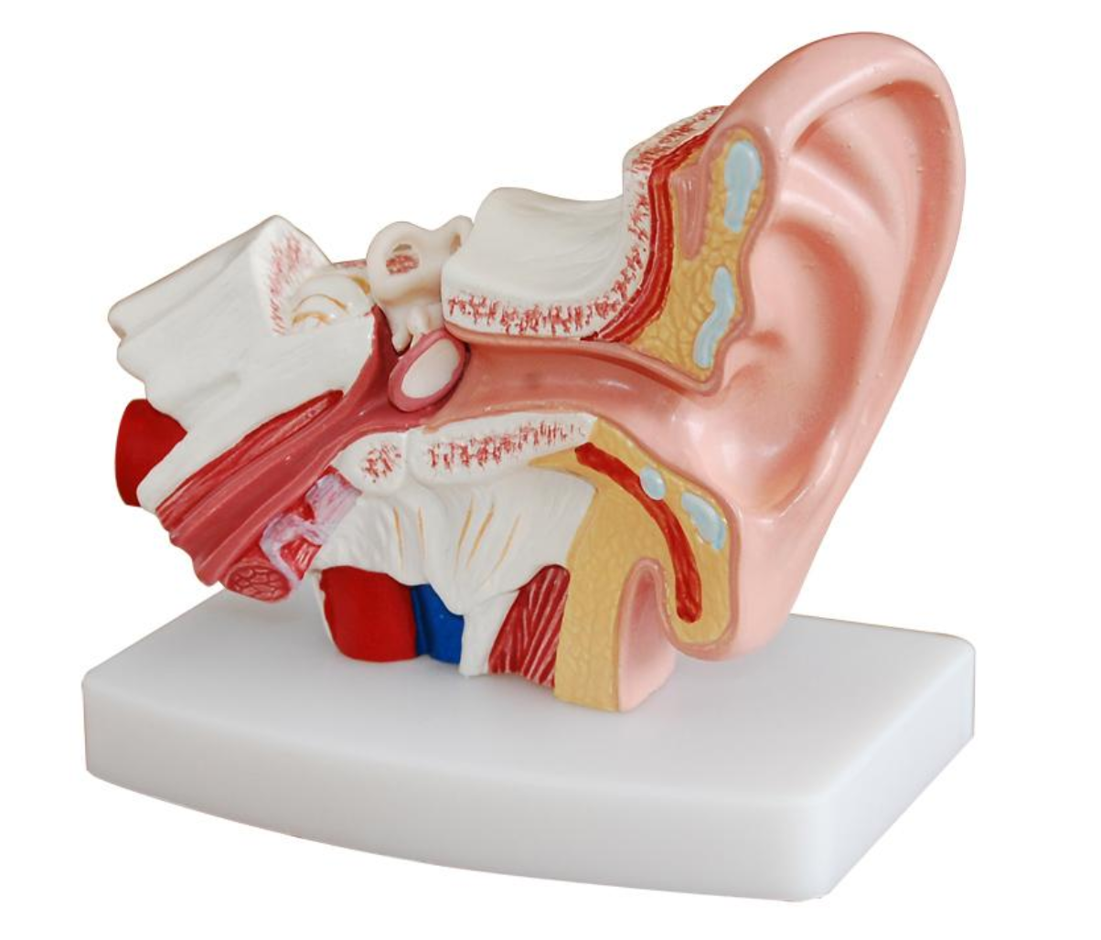 Representation of the outer, middle, and inner ear. 1.5 times enlarged. On stand.