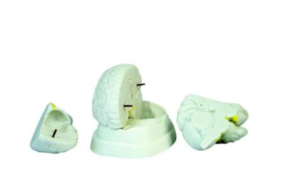 Demonstrate external features of human brain as a whole, as well as the relations between the component portions. Dissectible into 3 parts. Size: 18.4x14x13.5CM. On stand.