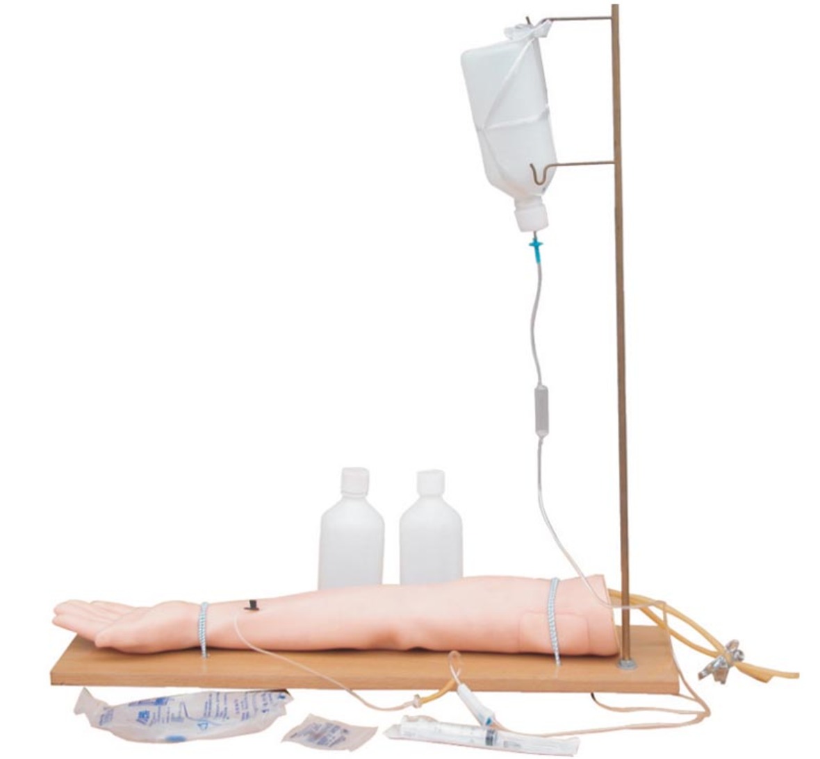 This arm model can demonstrate the following items: 1. Vein phlebotomy on elbow forearm 2. Vein injection on elbow forearm 3. Vein blood transfusion on elbow forearm 4. Vein liquid transfusion on elbow forearm 5. Muscular injection on deltoid on the side of upper limb