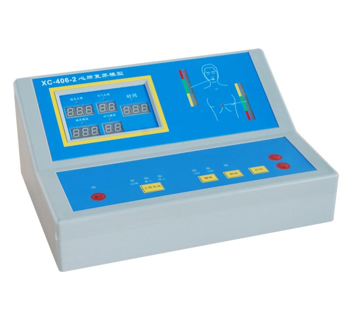 4) Indicators show compression depth: correct compression depth: 4-5cm (a)Insufficient compression depth, yellow indicator (b)Proper compression depth, green indicator (c)Excessive compression depth, red indicator