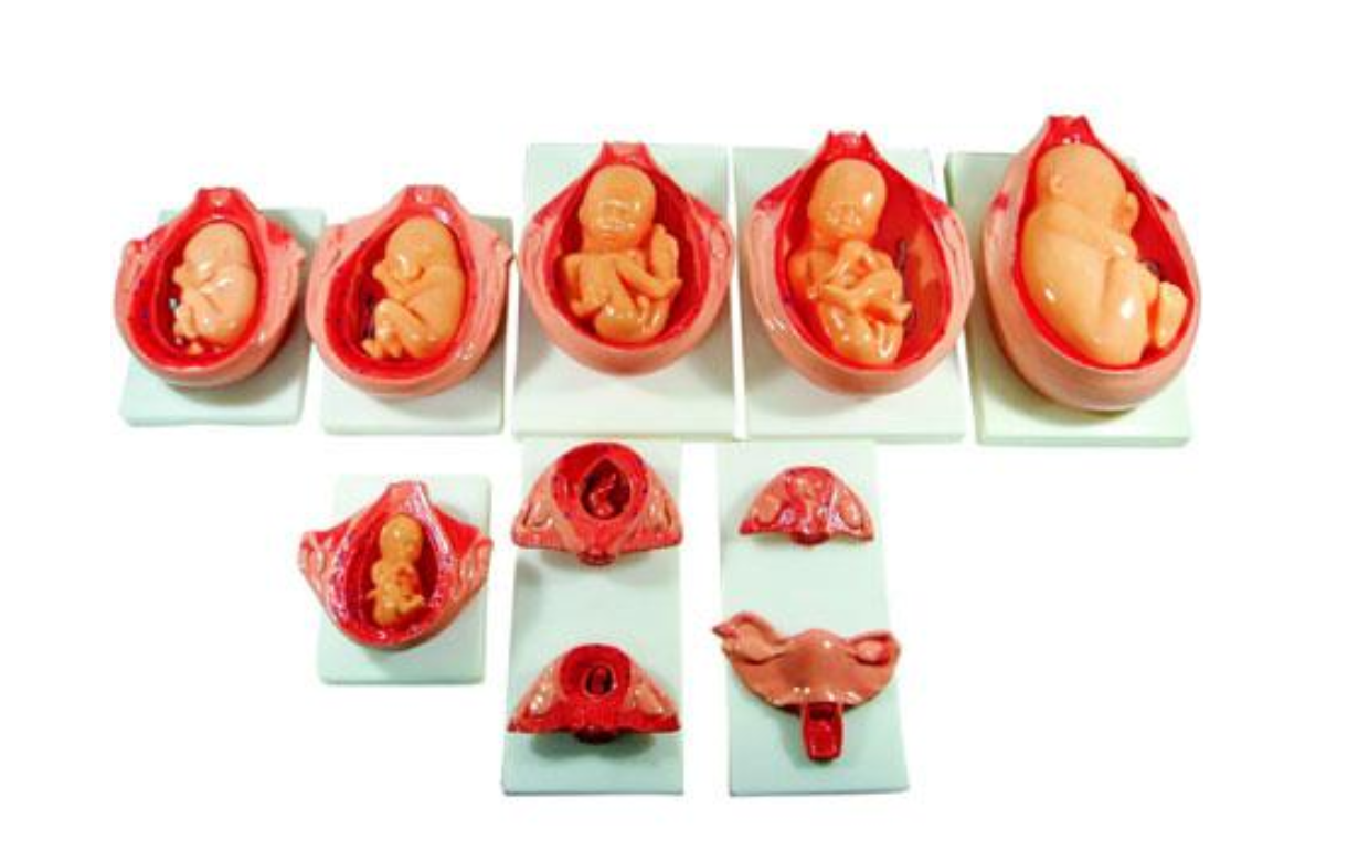 The model consists of 10 parts and show the relationship between fetus and uterus during the gestation period. Dimension: Natural size, on the base.