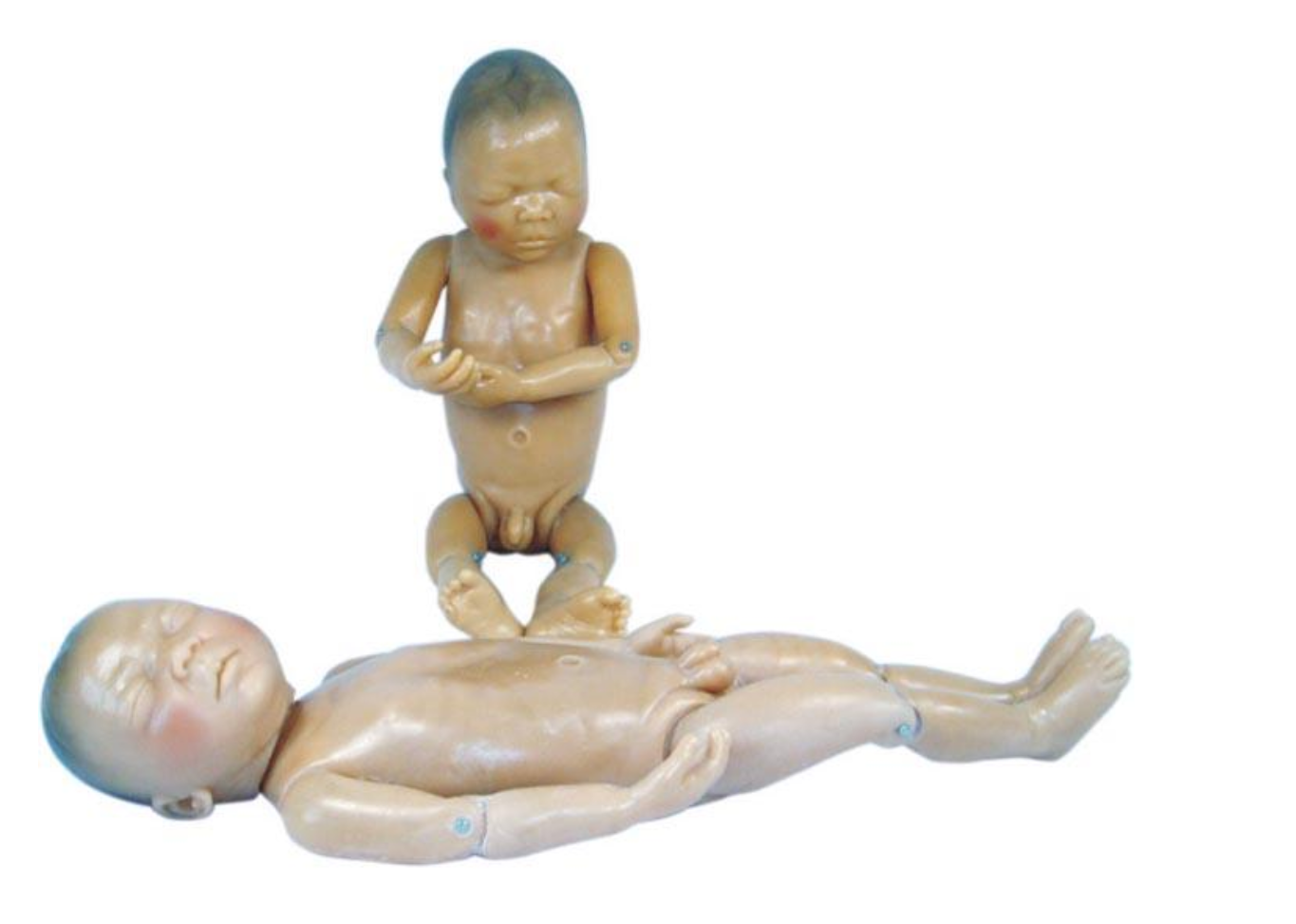 The size and configuration of these two models are almost as same as the normal newborn baby. The head, upper limbs, lower limbs and all joints are flexible. It can demonstrate the characteristic of the newborn baby and all kinds of operations in clinic education: includes different parturition method, newborn baby bath etc.Made of soft PVC plastic, washable. Length: 52CM, head diameter: 34CM.