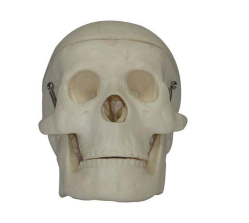 This model shows the major structure of the different bones of the skull. The calvarium can be removed and the mandible is spring hanged to view the bone structures of the mouth. This model is lifelike and made of unbreakable PVC plastic.