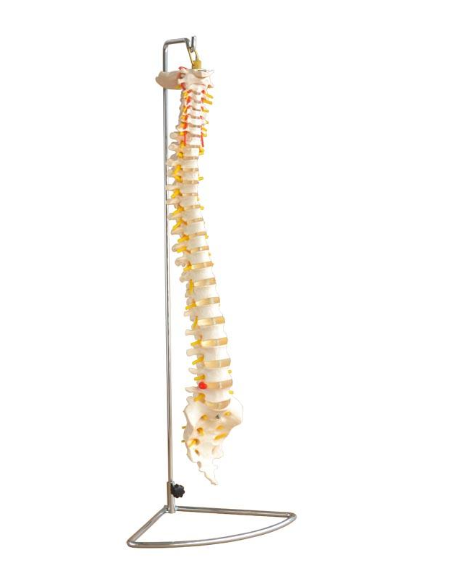 This model shows all significant features of each vertebra, including spinal cord, nerve roots, the vertebral artery, a herniated disc and vertebral notch etc. Special features include: flexible vertebral column, sacrum, occipital bone, vertebral artery, all nerve branches and herniated lumbar disc.