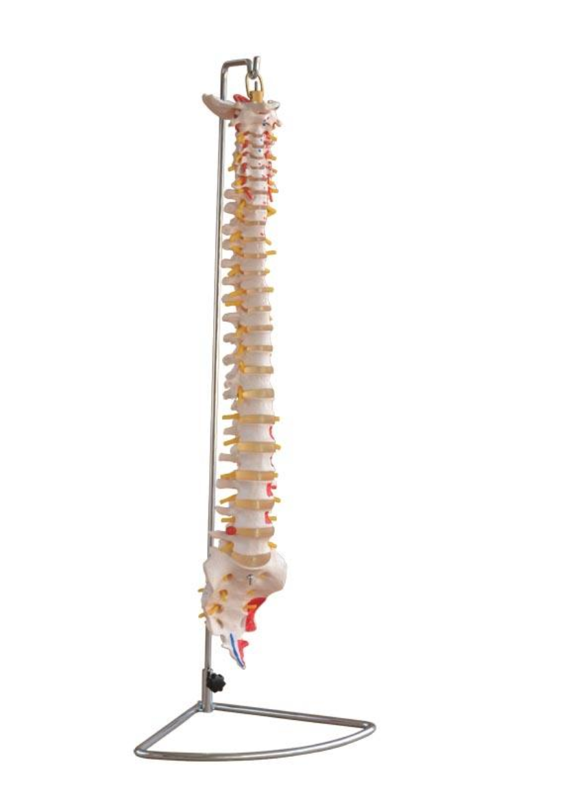 Based on XC-107, this model is painted to show the muscles. The left side of the vertebral column shows the points of origin (red) and the points of insertion (blue) of the muscles.