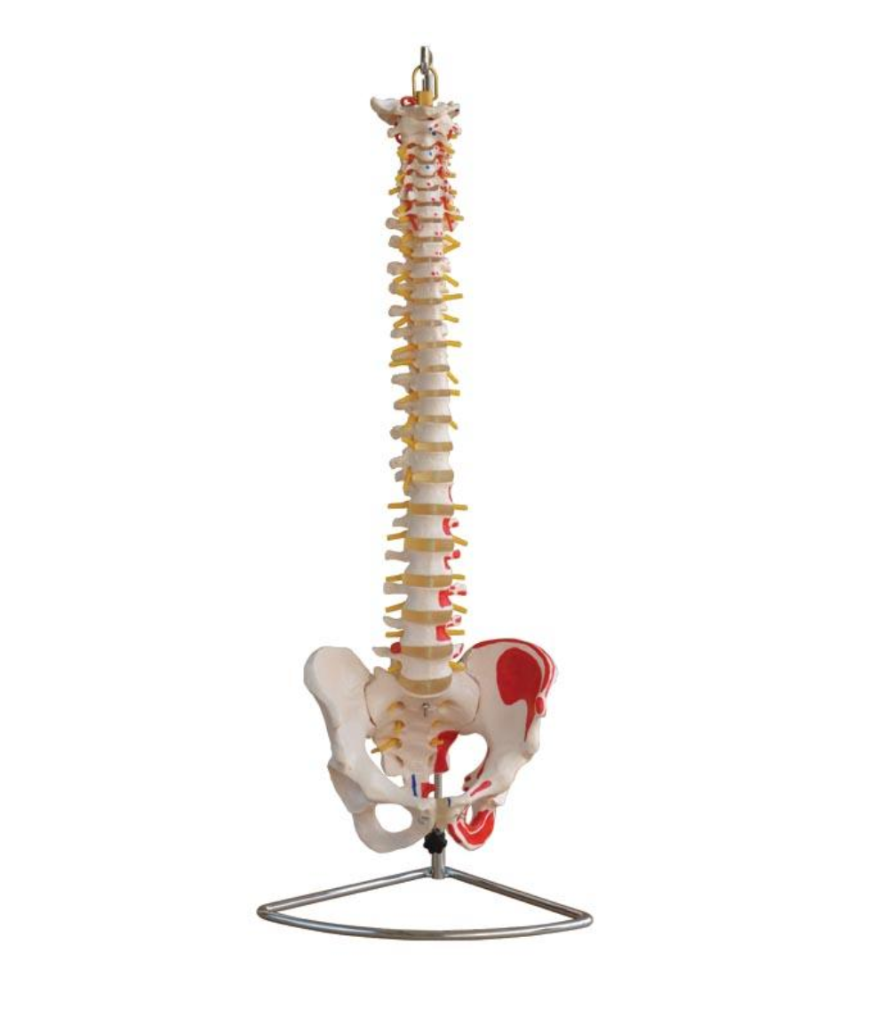 Based on XC-105, this model is painted to show the muscles. The left side of the vertebral column shows the points of origin (red) and the points of insertion (blue) of the muscles.